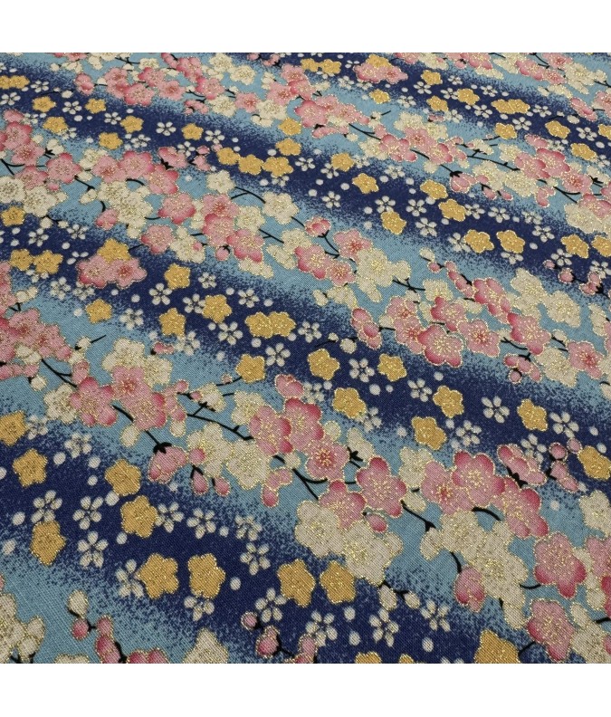 Coton 150 - Japonais fleurs dégradé bleu