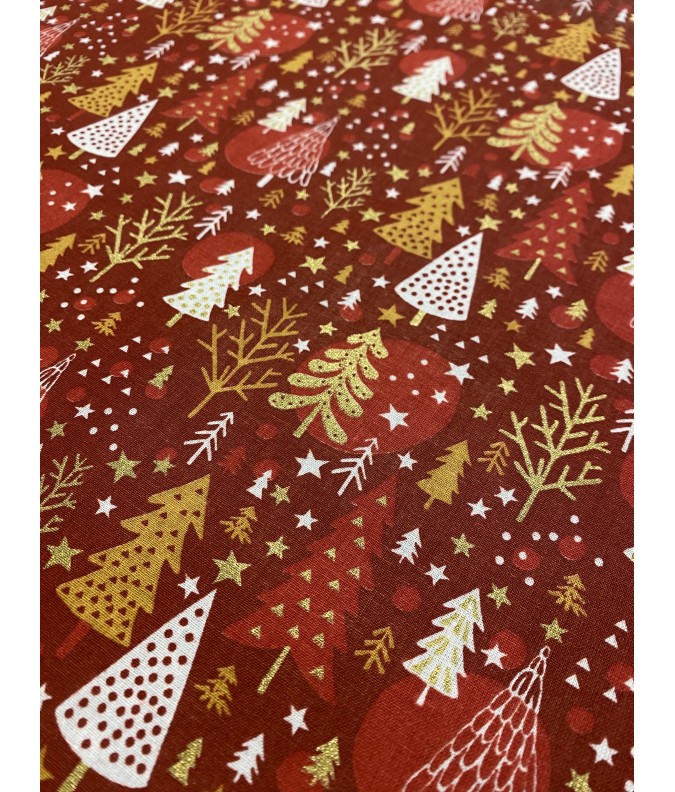 Sapins doré fond bordeaux