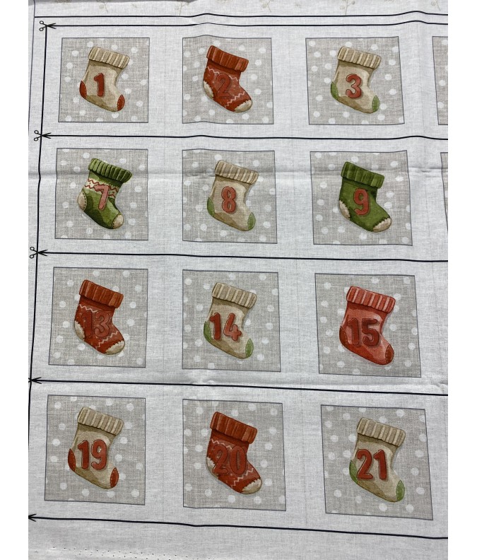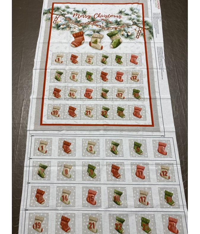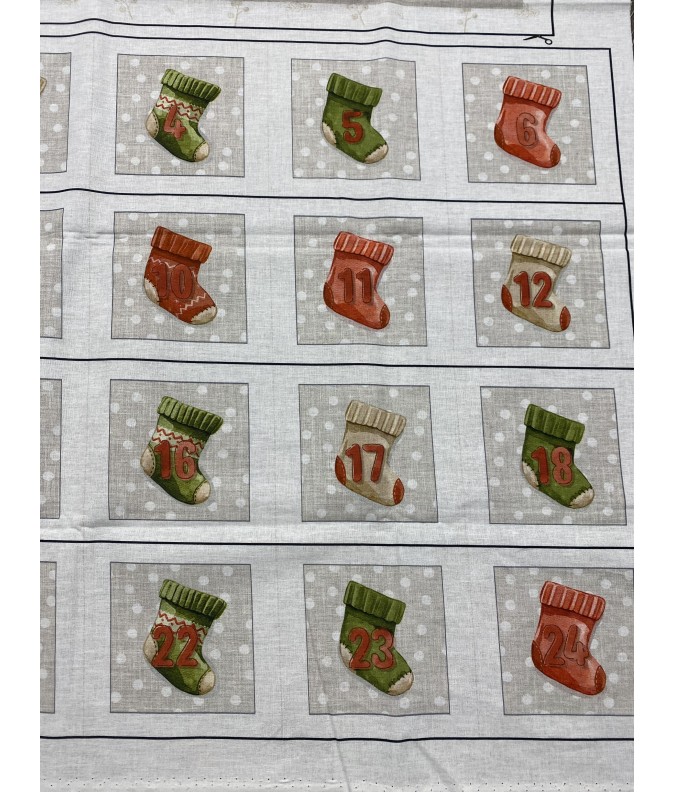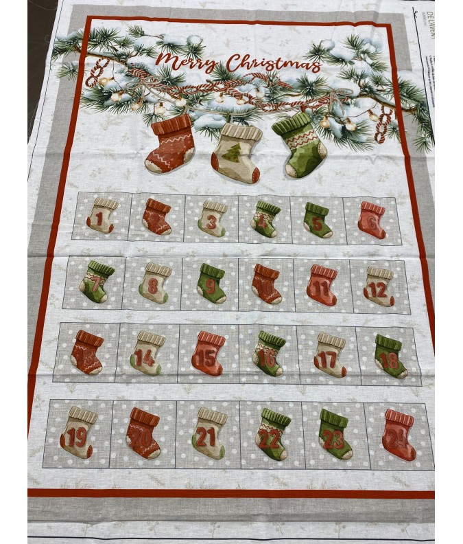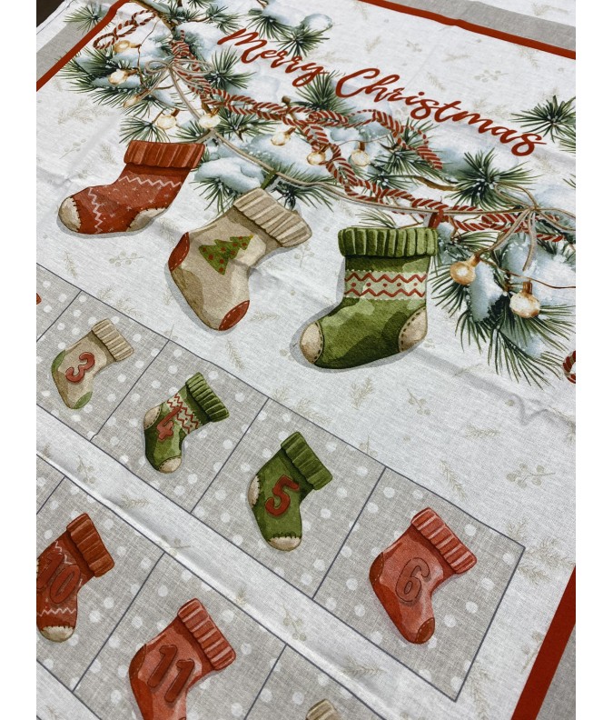 Panneau Calendrier de l'avent chaussettes de noël et guirlandes lumineuses